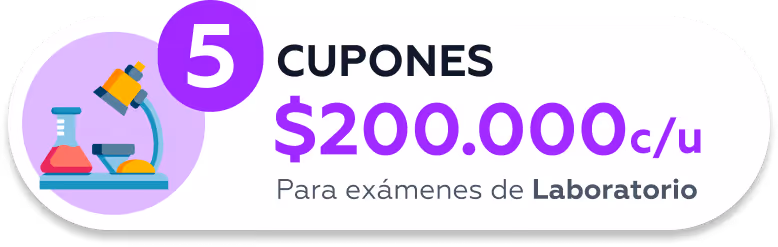 Premio 2: Cupón de laboratorio (5 ganadores). $200.000 en prestaciones FONASA a precio particular. Disponible en Santiago, Rancagua, Chillán y Temuco.